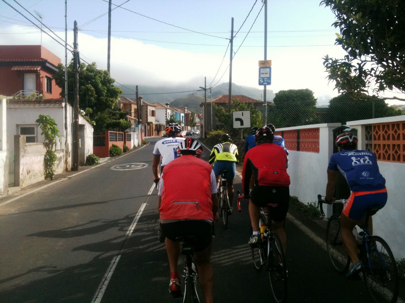 Pasadas las 8 de la mañana partimos del lugar de reunión en La Laguna unas 10 personas, entre ellos, Triatletas y Ciclistas de carretera. La ruta, partir desde el Camino de Las Peras hasta el Alto de Los Repetidores cerca de La Esperanza y de allí al Pico del Inglés para rematar la faena con una transición --en el coche-- en el punto de partida, dejando la máquina y calzándonos las zapatillas de carrera para hacer 5 kms a pie.